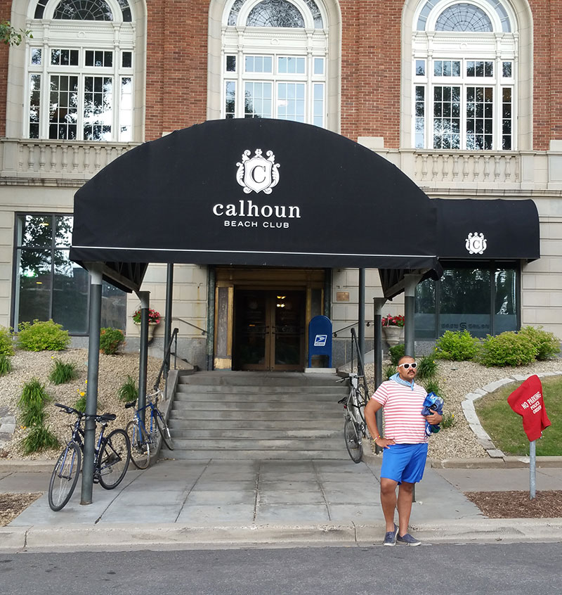 - Thaddeus in front of the Calhoun Beach Club in Minneapolis.